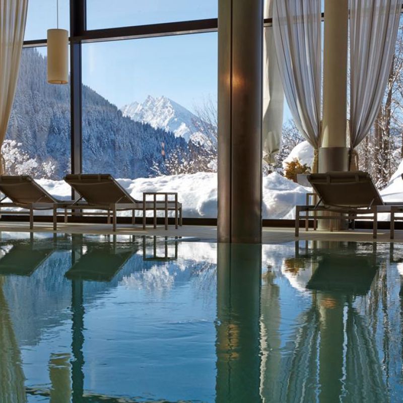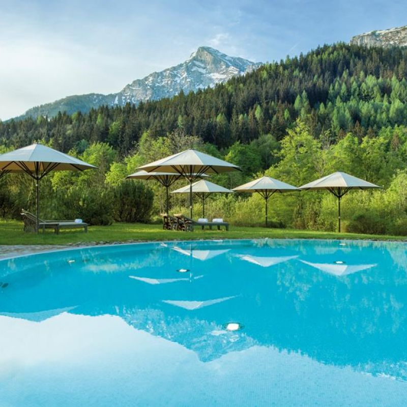 Luxusní hotel "Pure alpine lifestyle" v nadmořské výšce 1000 m. Procházky, horské túry, půjčovna elektrokol.