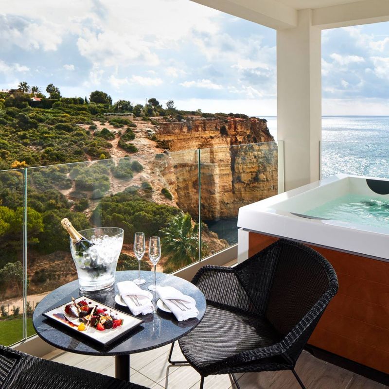 Úžasná poloha hotelu, střešní terasa s panoramatickým výhledem na Atlantský oceán.