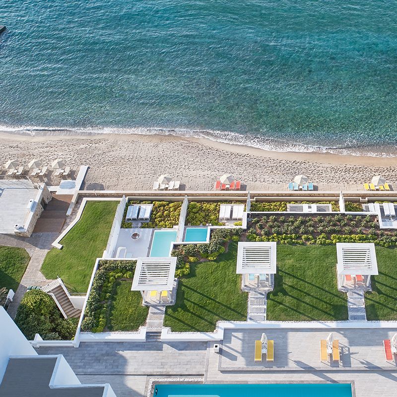 Rodinný all inclusive hotel na písečné pláži s oblázky. V blízkosti městečka Rethymno.