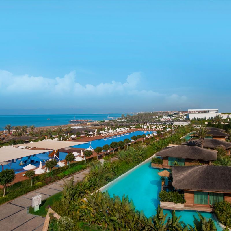 Luxusní hotelový areál s rodinnými pokoji, suity a také vilkami. Velké zázemí pro děti.