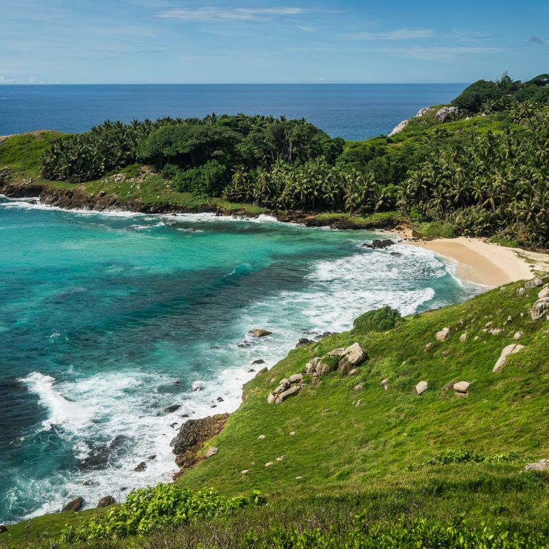 Původně pirátský ostrov s nedotčenou přírodou je rájem pro suchozemské želvy, které zde žijí volně. Na 7 písečných plážích hnízdí mořské želvy. Ubytování v 16 vilách s vlastním bazénem.