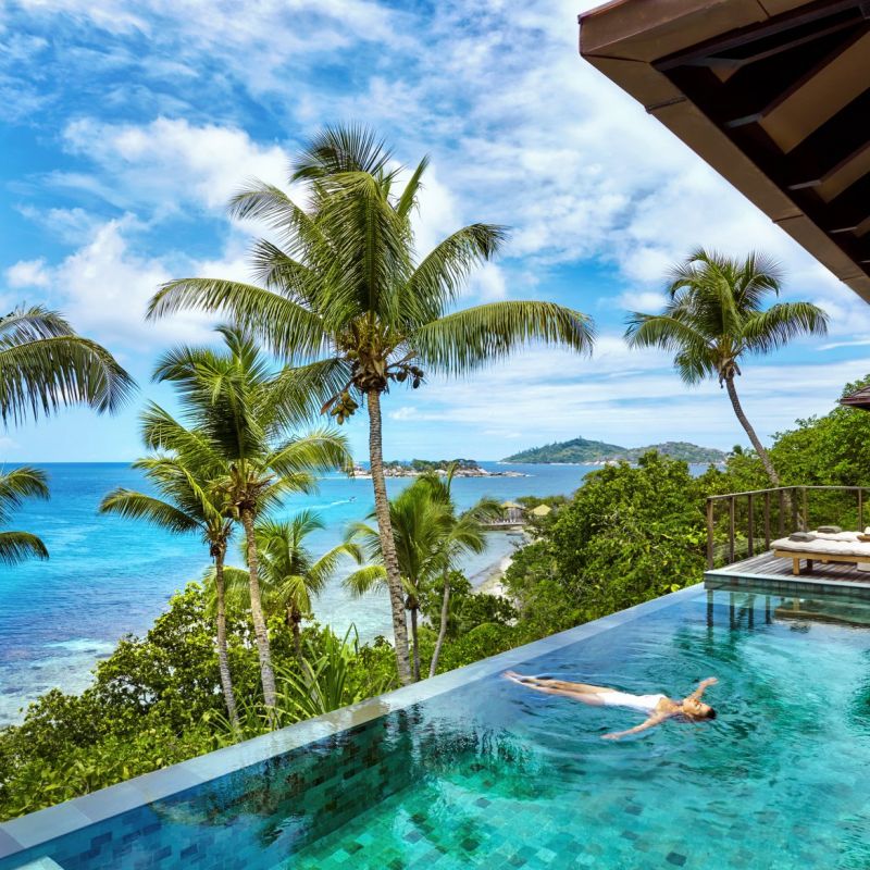 Resort na ostrově Félicité. Ubytování v pohodlných vilkách s bazénem. Six Senses Spa.