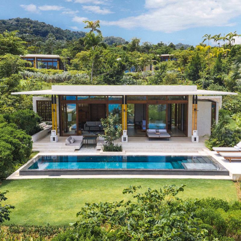 Resort je obklopen hustou džunglí a vysokými palmami. Vilky s vlastním bazénem, restaurace na útesu s úžasným výhledem na pláž Playa Grande. V blízkosti Playa Grande Golf Club.