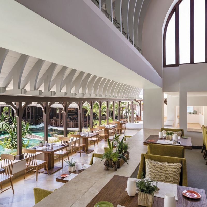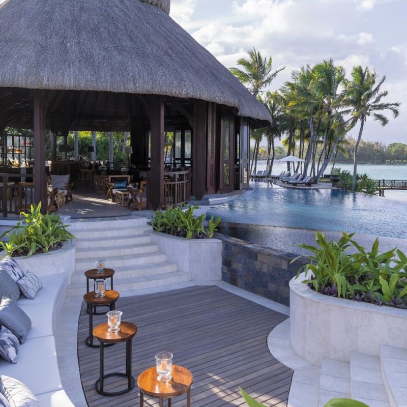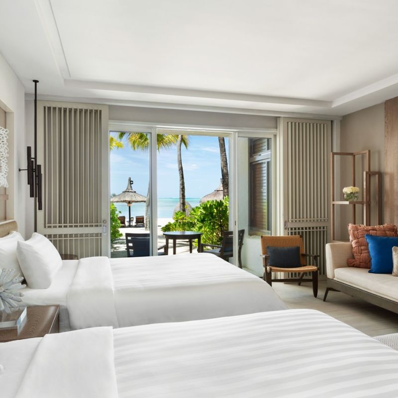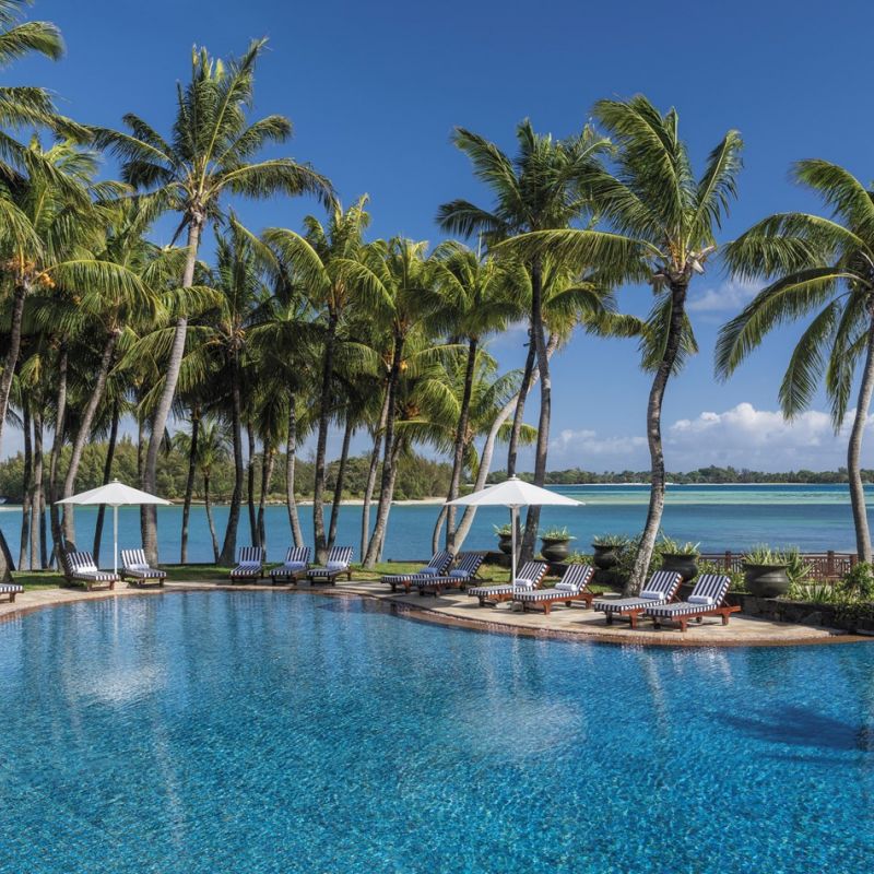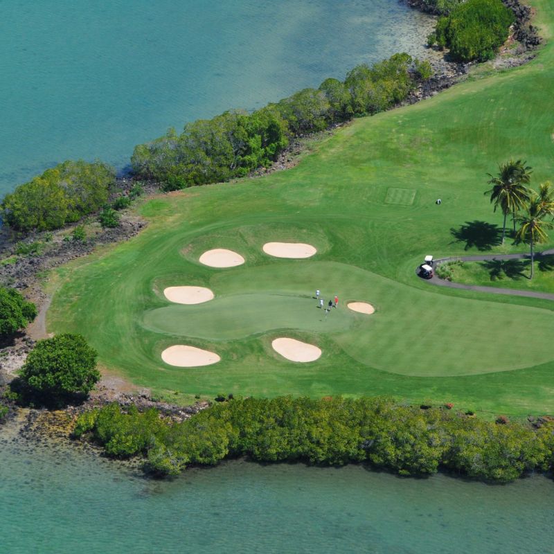 Prvotřídní hotel s běloskvoucí pláží. Hosté využívají i 2 protilehlé ostrovy Frangipani a Ile aux Cerf s golfovým hřištěm.