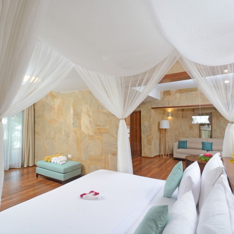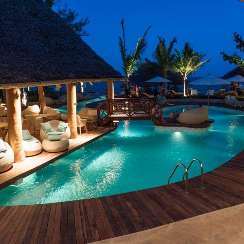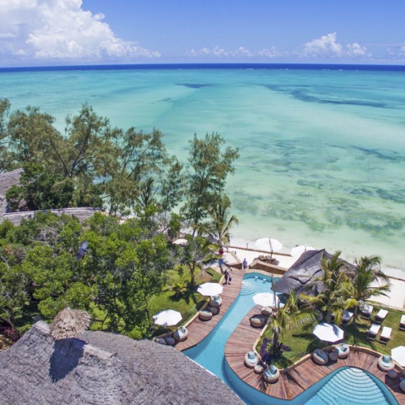 Luxusní resort s elegantním ubytováním na východním pobřeží ostrova. Leží u 2 km pláže Pongwe s mělkou lagunou a korálovým útesem.