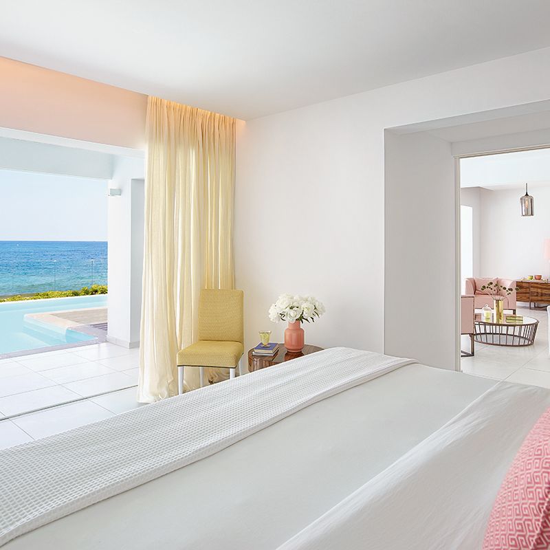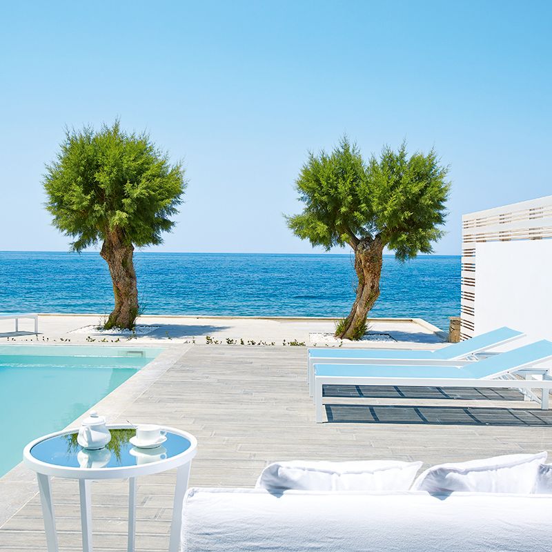 Rodinný all inclusive hotel na písečné pláži s oblázky. V blízkosti městečka Rethymno.