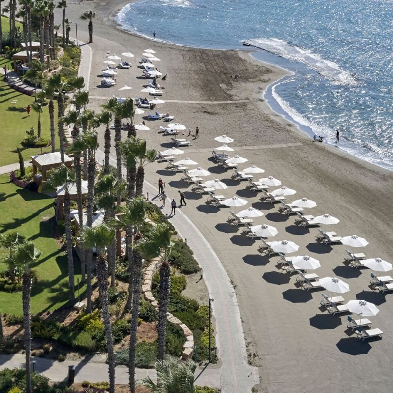 Luxusní, moderní hotel u písečné pláže a zahrady. Historické centrum Limassolu 15 km.