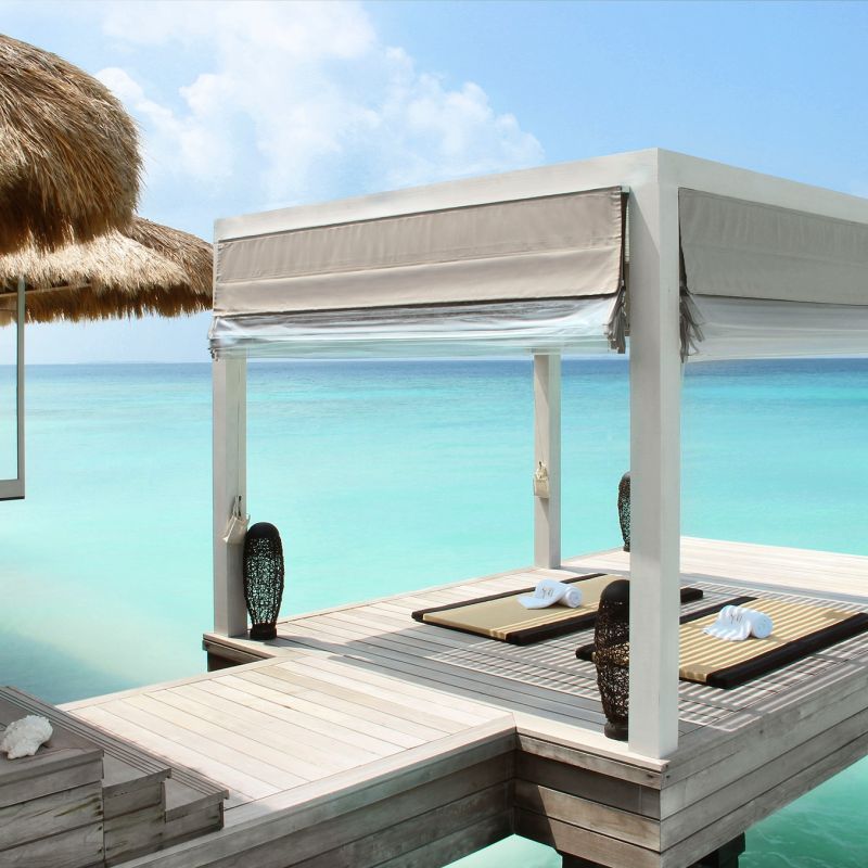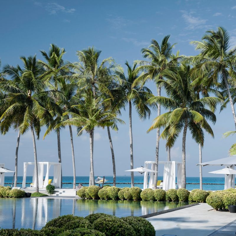 Jeden z nejluxusnějších resortů na Maledivách. Velmi prostorné vily s terasou a vlastním bazénem. Privátní atmosféra, vynikající servis, 5 gurmánských restaurací.