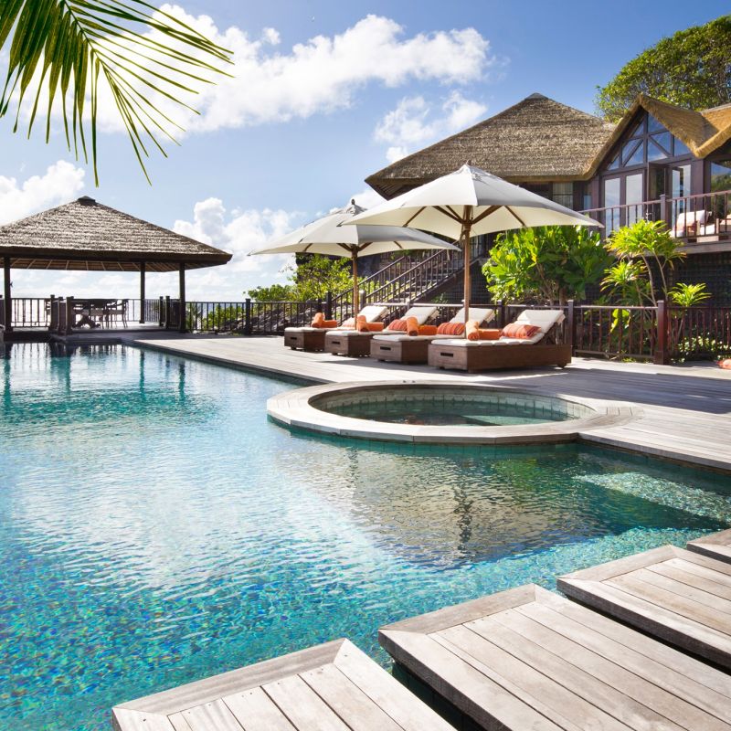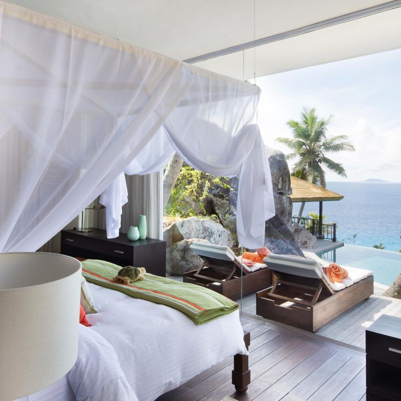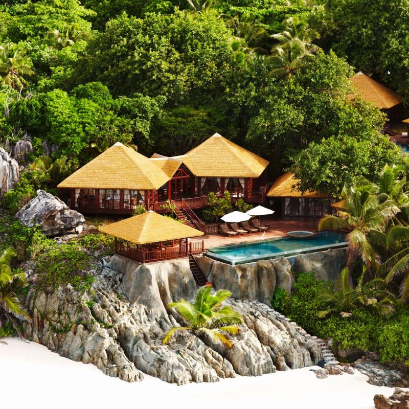 Transfer z letiště Mahé helikoptérou 15 minut nebo 90 minut rychlým člunem.