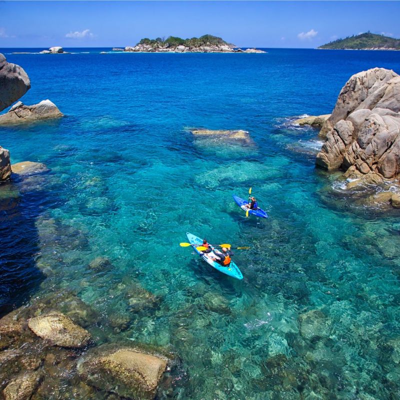 Transfer z letiště Mahé místní linkou na ostrov Praslin 15 minut a dále 25 minut motorovým člunem nebo transfer z letiště Mahé helikoptérou cca 20 minut.