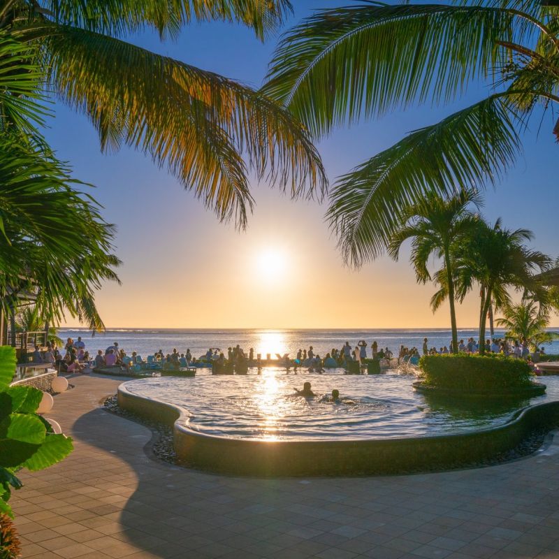 V jihozápadní části ostrova, pod majestátní horou Le Morne.