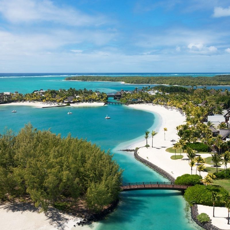 Prvotřídní hotel s běloskvoucí pláží. Hosté využívají i 2 protilehlé ostrovy Frangipani a Ile aux Cerf s golfovým hřištěm.