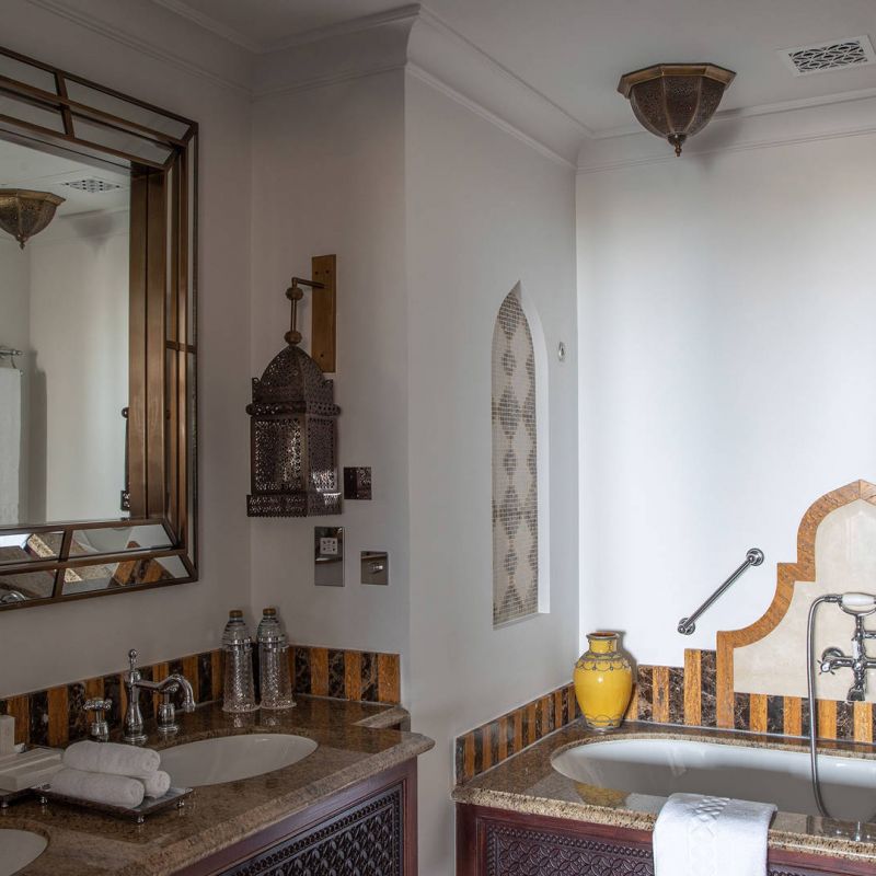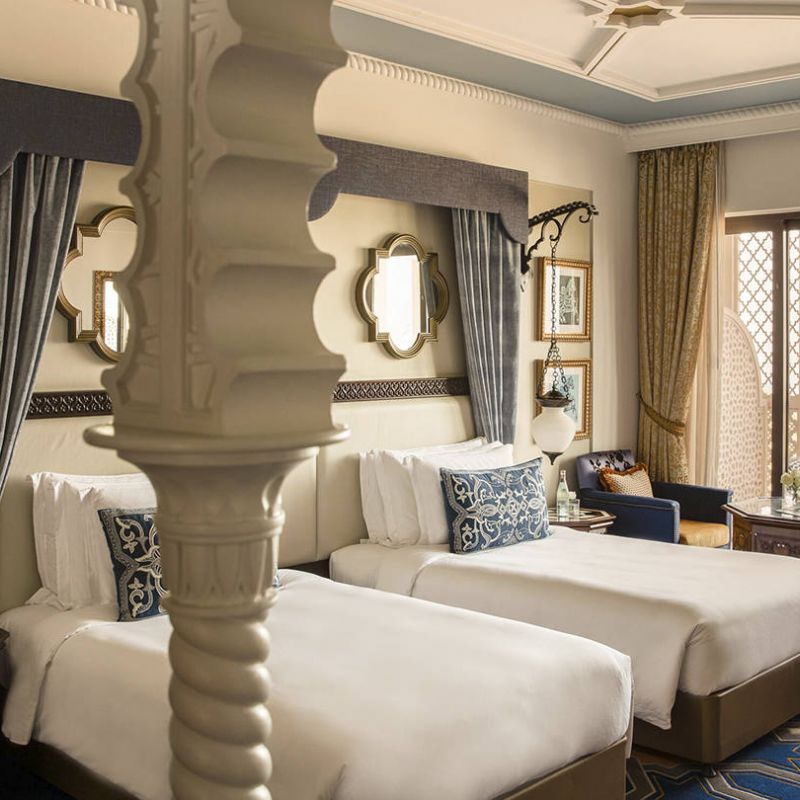 Hotelový komplex Jumeirah Madinat je tvořený hotely Al Qasr, Dar Al Maysaf, Mina A’Salam, Al Naseem. Resorty jsou propojené vodními kanály. Hosté mají k dispozici přes 40 restaurací a barů.