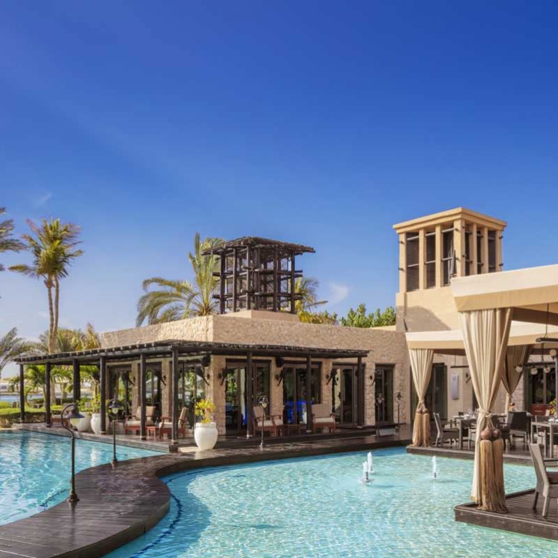 Hotel v arabském stylu uprostřed nádherné zahrady, s privátní pláží.